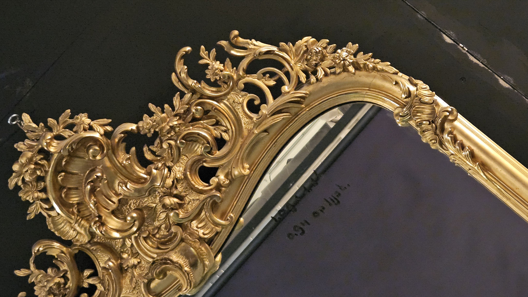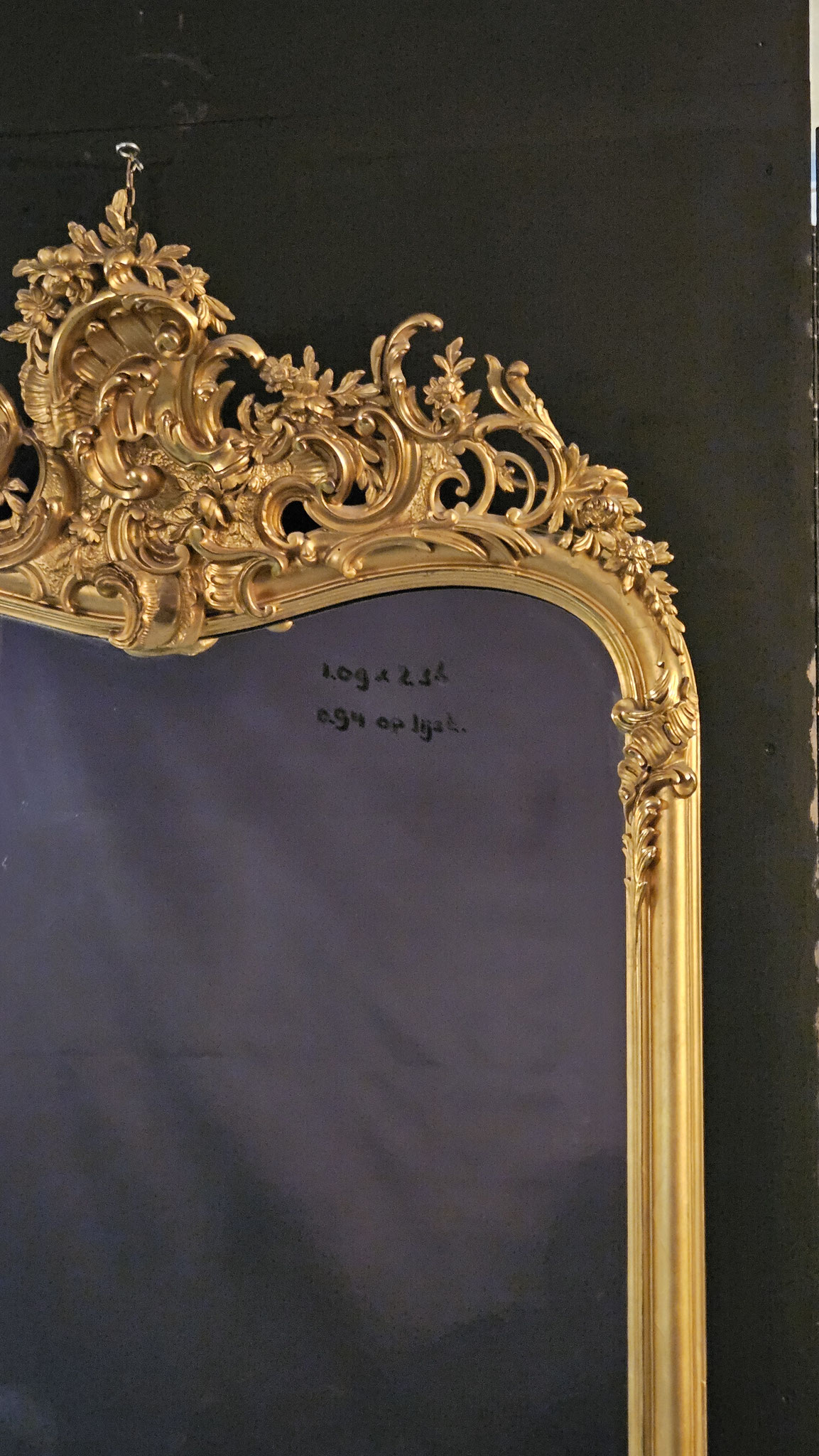 Grote antieke schouwspiegel met sierlijke guirlandes