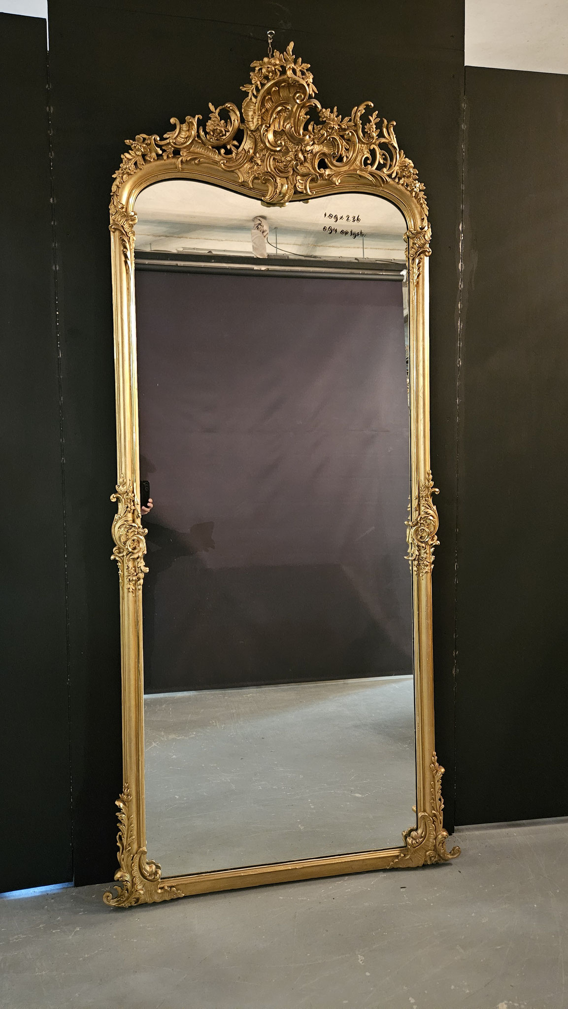 De afmetingen van de spiegel zijn ca. 1.30 x 2.38 hoog.